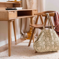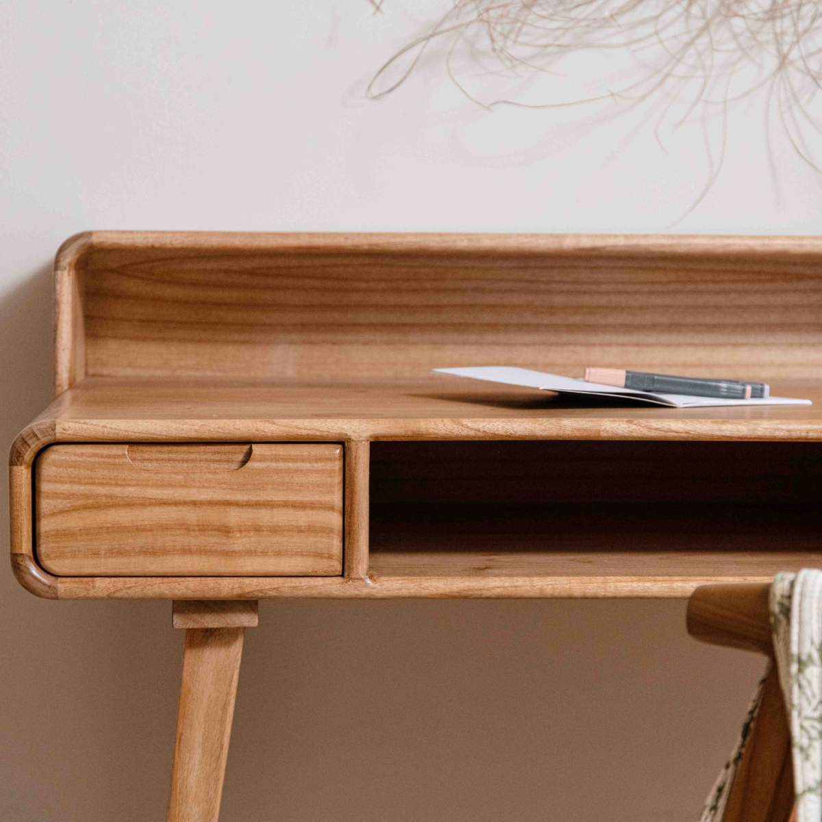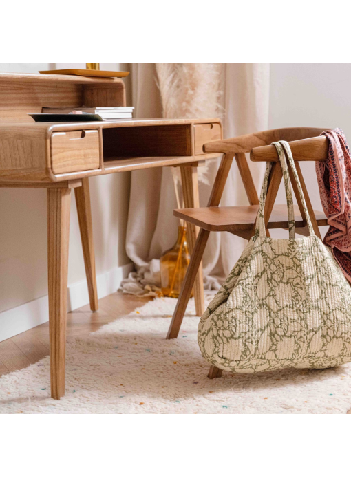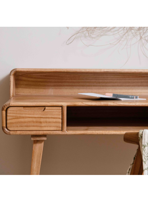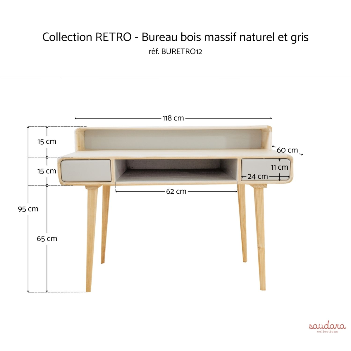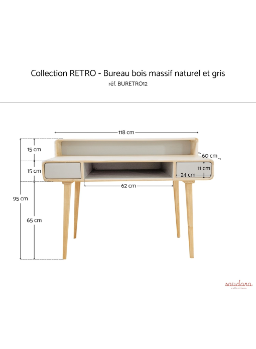 Bureau secrétaire bois massif naturel et gris - RÉTRO