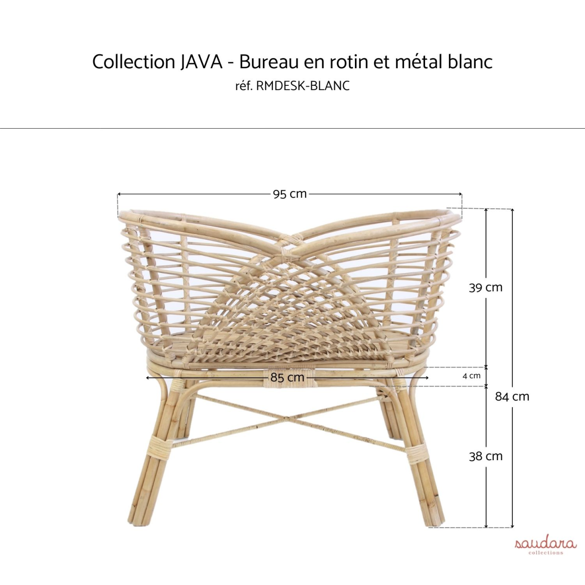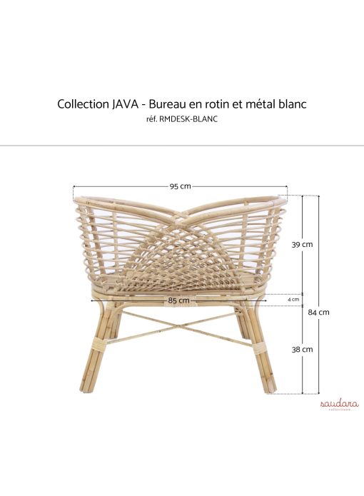 Pied fixe en rotin, finition vernis mat (à l'eau), douceur avec ses lignes courbes et ses croisillons.