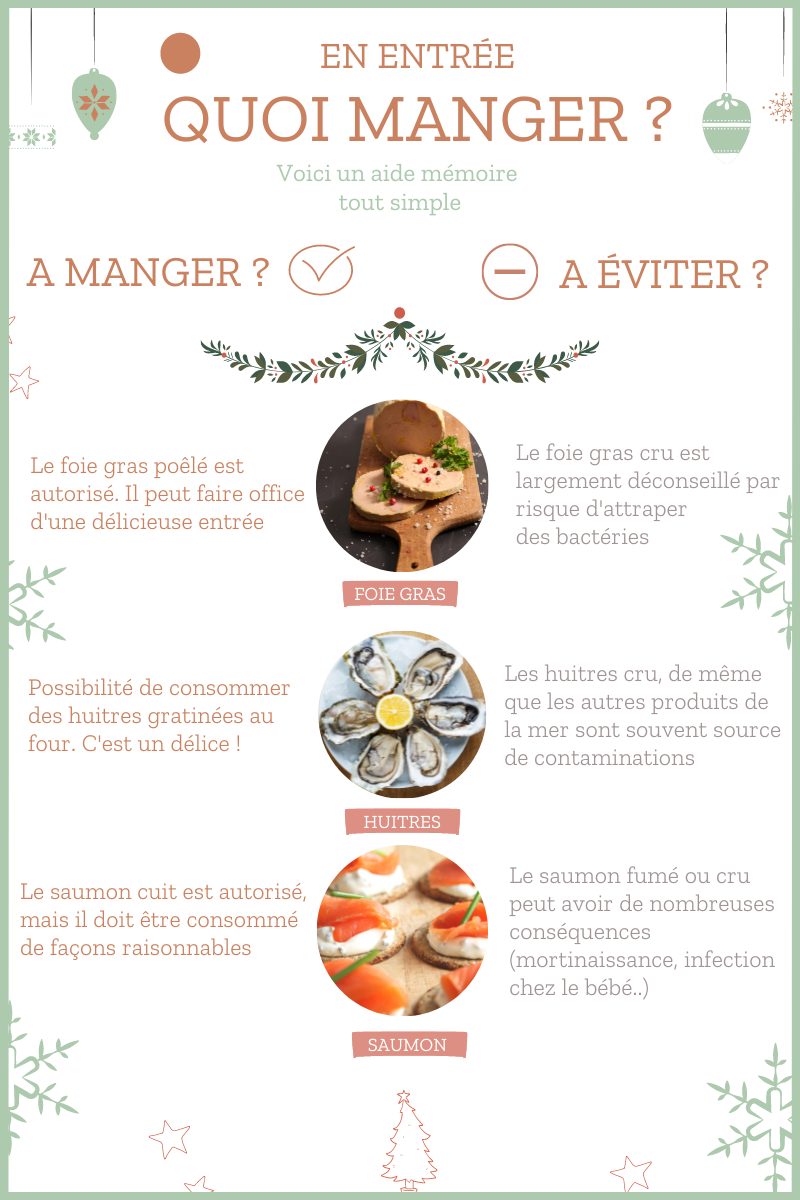 Les fêtes de fin d’année sont l’occasion de se retrouver en famille mais également le moment de l’année où foie gras, saumon fumé et champagne s’invitent à nos tables. Ces petits plaisirs de Noël dont on raffole tant, ne sont pas toujours conseillés pour les femmes enceintes ou allaitantes.