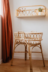 Le mieux est de laisser le couffin au sol ou bien de le mettre en hauteur sur des pieds stables (comme c’est le cas pour nos couffins June).