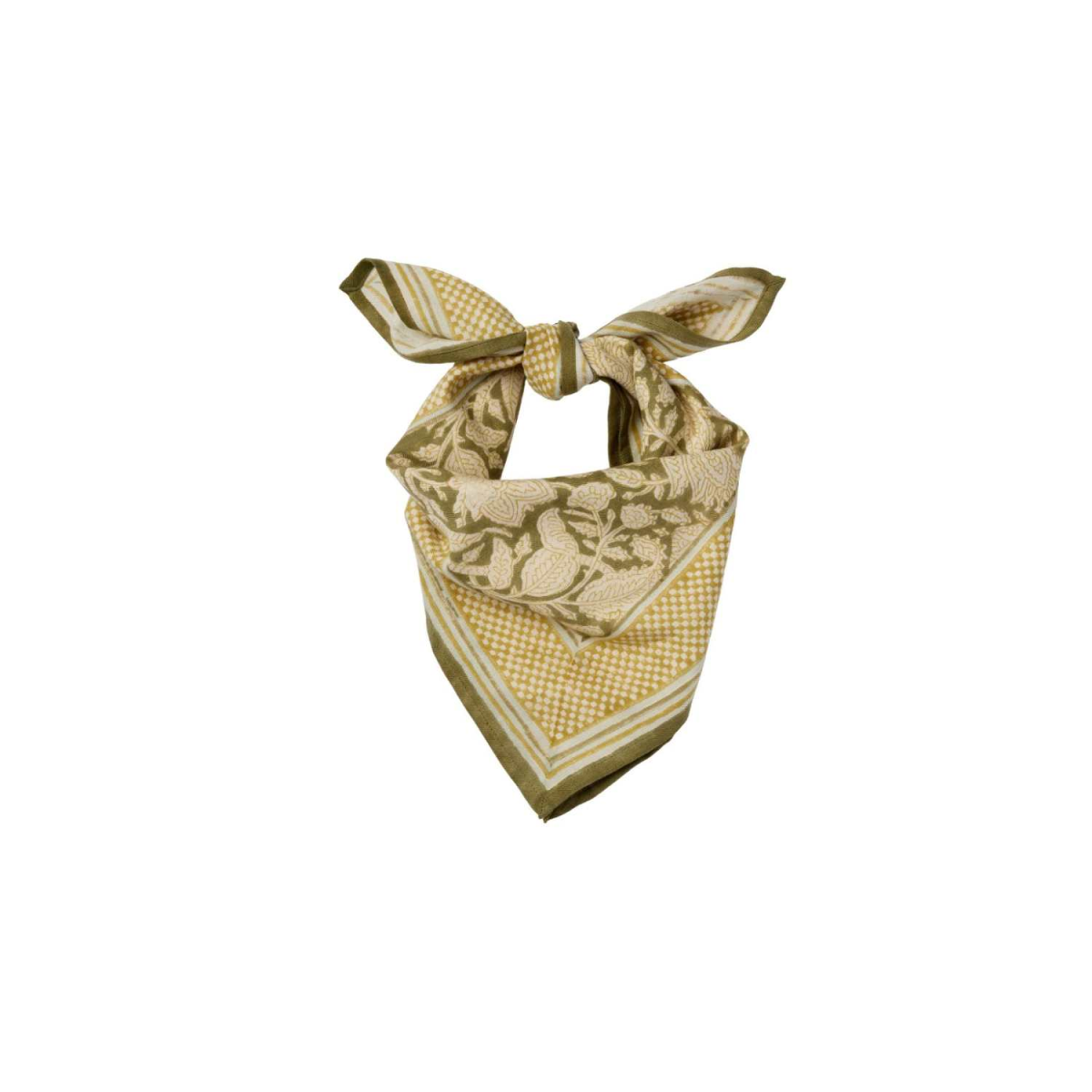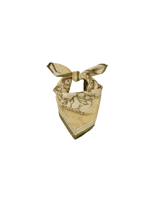 Foulard 100% coton imprimé indien "Block print" dans une très jolie gamme de Kaki et beige ultra lumineux.