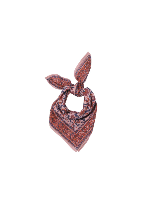 Foulard 100% coton imprimé indien "Block print" dans une très jolie gamme de rose et marine ultra lumineux.