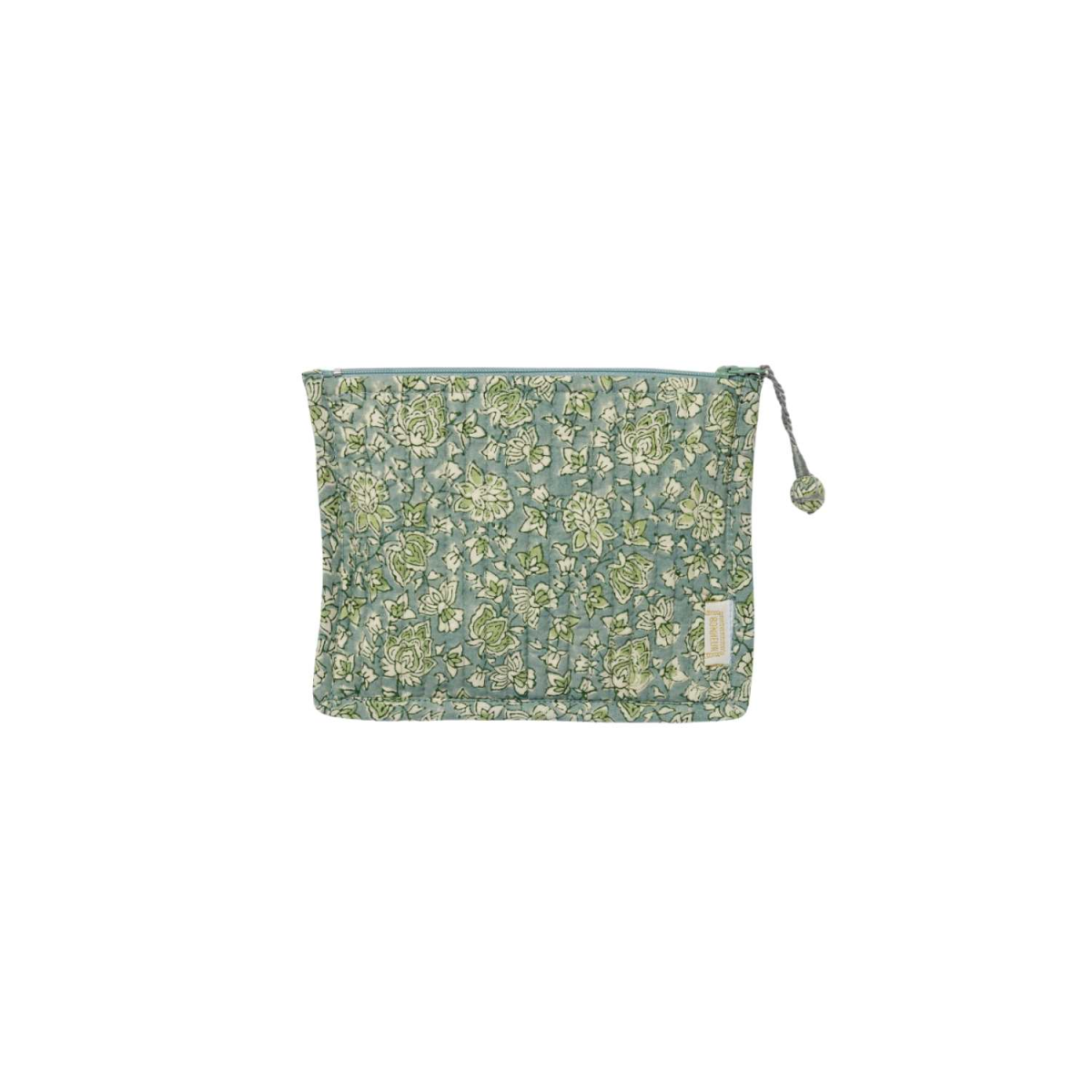 Imprimée à la main en Block print, le tissu 100% coton est entièrement matelassé et orné d'un joli pompon fantaisie fait main.