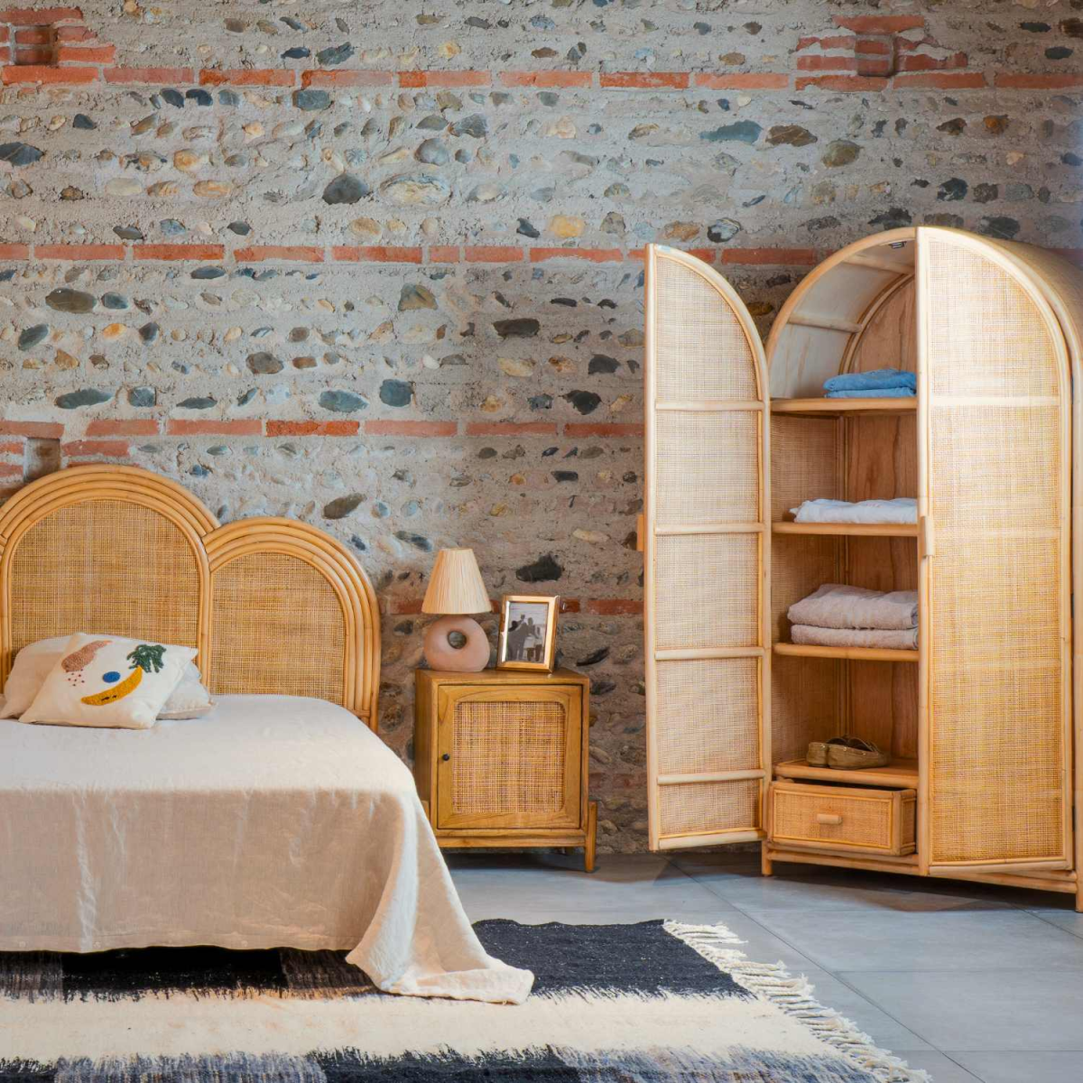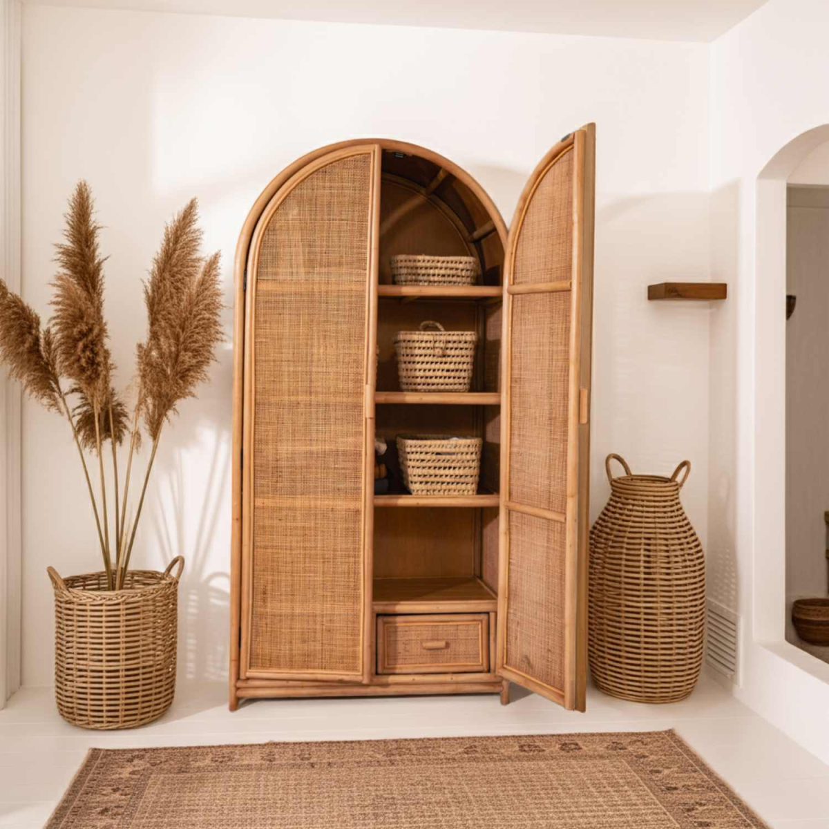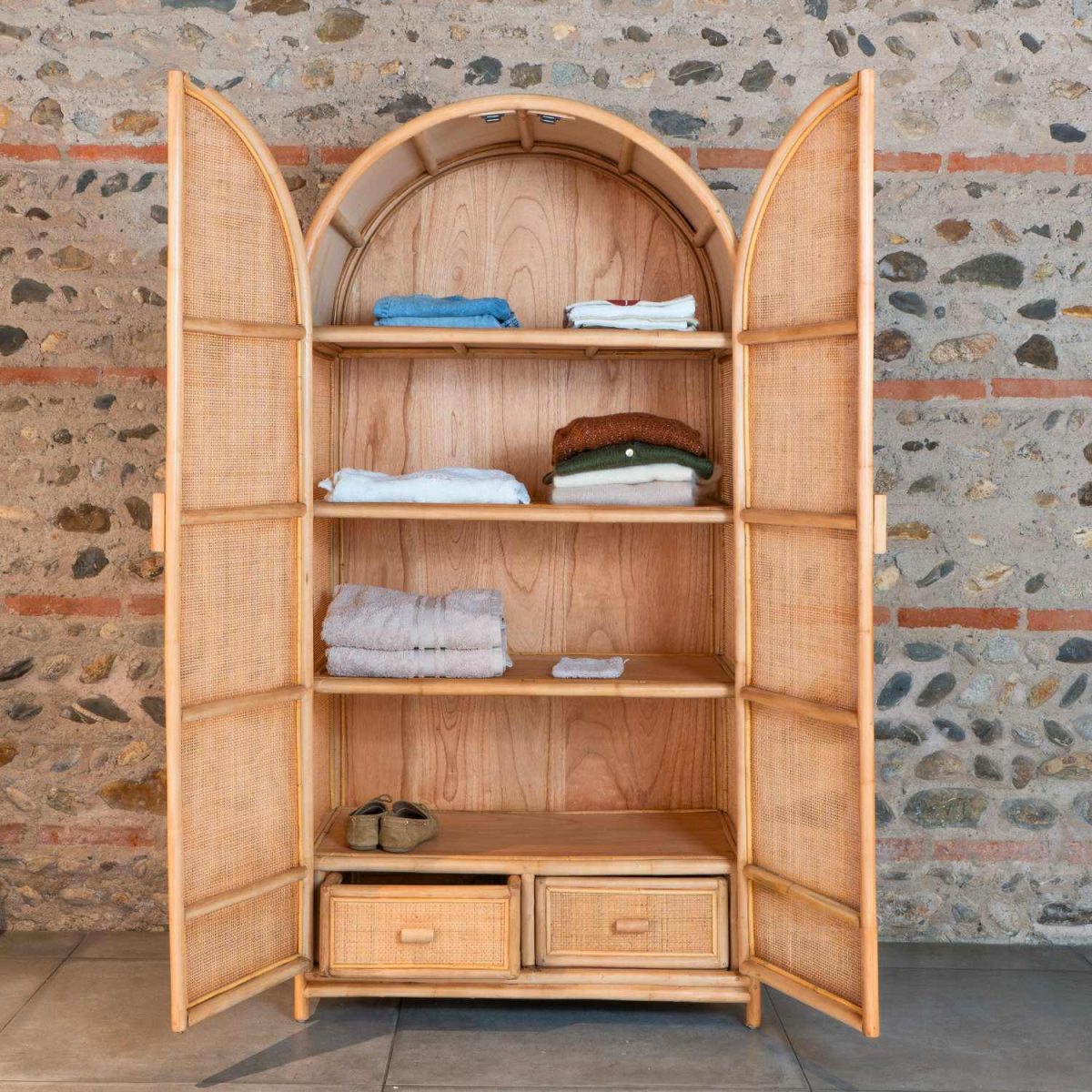 Armoire double porte rotin et cannage - Collection RINCA