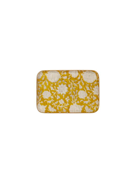 Ce plateau est conçu à la main en Inde, avec une bordure dorée à l'or fin, il ne passe ni au lave vaisselle ni au micro-onde