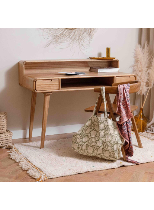 Imprimé à la main en Inde, en block print, il est entièrement ouatiné pour encore plus de confort et sa doublure intérieure est contrastée dans une magnifique rayure assortie.